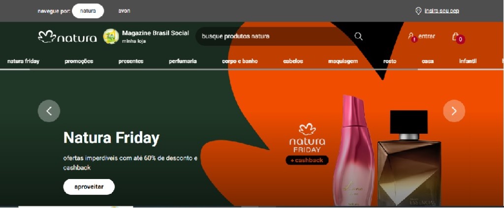 - Veja abaixo o site da natura que vai aparecer ao clicar no link acima. Veja que vai aparecer junto a logo da NATURA, a logo e o nome MAGAZINE BRASIL SOCIAL,